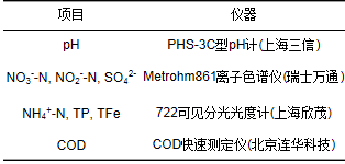 1.3 實驗水質(zhì)與分析儀器