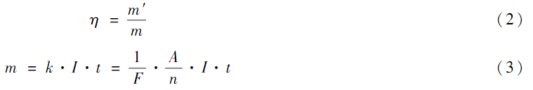 電化學氧化法中,通常采用電流效率來表征反應體系的綜合效果。 電流效率的計算公式如式(2)所示。