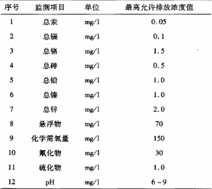 (2) 在脫硫廢水處理系統(tǒng)出口要監(jiān)測的項(xiàng)目和最高允許排放濃度值見下圖。