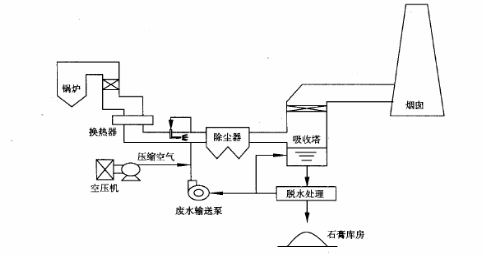 將脫硫廢水經(jīng)廢水泵送至空氣預(yù)熱器后的煙道。采用霧化噴嘴噴射,霧化后的脫硫廢水即刻在煙道內(nèi)蒸發(fā),廢水中的雜質(zhì)以固體物質(zhì)的形式和飛灰一起隨煙氣進(jìn)入除塵設(shè)備,經(jīng)過除塵器,顆粒物被捕捉下來隨灰一起外排。工藝流程見圖。