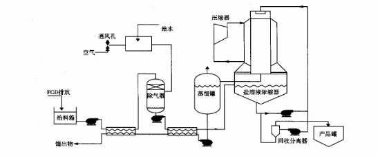 鹽濃縮工藝能夠?qū)碜猿R?guī)處理系統(tǒng)的脫硫廢水,通過蒸汽壓縮式降膜蒸發(fā)器,處理生成純凈的蒸餾水,用于回收到FGD系統(tǒng)作為工藝補(bǔ)充水。這個系統(tǒng)的副產(chǎn)物是氯化鈣溶液,它適合應(yīng)用在防塵、穩(wěn)定土壤、防冰控制以及其他與高速公路建設(shè)相關(guān)的領(lǐng)域。3.3排至高溫?zé)煹勒舭l(fā)工藝