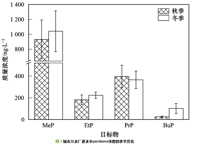 2.4 污水中parabens質(zhì)量濃度的季節(jié)變化