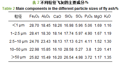飛灰的粒徑分布采用馬爾文MS2000激光粒度儀分析, 測量范圍為:0.02~2 000 μm, 掃面的速度可以達(dá)到1 000次·s-1.由圖 1可知, 飛灰的粒度分布廣泛, 從0.316~2 187.76 μm, 其中小于100 μm的顆粒物占69.71%, 100~550 μm占到了28.46%, 大于550 μm只占1.81%.含量細(xì)微的飛灰極易飛散到大氣中, 造成大氣的污染.