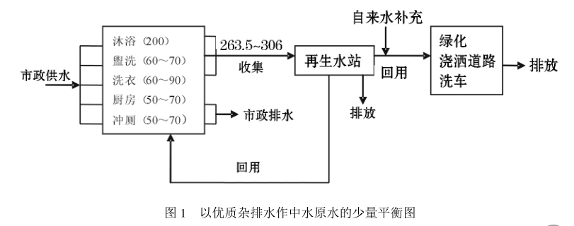 國(guó)家現(xiàn)行《住宅建筑設(shè)計(jì)規(guī)范》規(guī)定衛(wèi)生間與廚房排水應(yīng)分別排水直至室外。這樣采用優(yōu)質(zhì)排水作中水水源回用于沖廁、綠化等用途是切實(shí)可行的。我國(guó)城市住宅中用于沖廁和綠化等用水量占總用水量的 32 % 左右 , 而淋浴、盥洗和洗衣機(jī)用水占總用水量的 38 % 左右 , 若考慮 1 1 15 安全系數(shù) (32 % × 1 1 15 <38 %) , 由此可見(jiàn)住宅中淋浴、盥洗和洗衣機(jī)等優(yōu)質(zhì)雜排水再生后能滿足沖廁和綠化用水的要求。